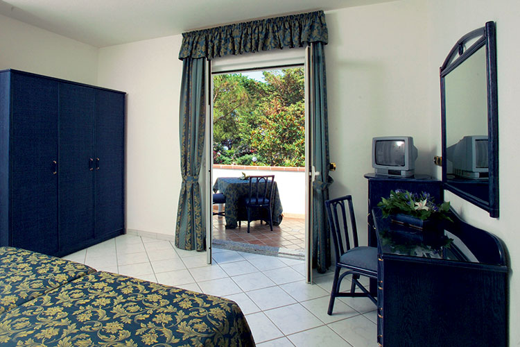 Le camere disponibili sono di quattro tipologie: la singola standard, la doppia con vista sul giardino, la doppia con vista mare e la Junior Suite, ovviamente con vista mare.