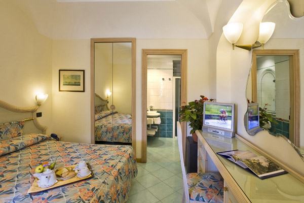 La struttura è composta da un complesso principale e da 3 villette con ingresso indipendente e piccolo giardino, site soli 50 metri dall’ingresso principale dell’hotel. Le camere, alcune arredate in stile 700, altre in stile moderno, sono tutte dotate di servizi con asciugacapelli, telefono diretto, aria condizionata, tv satellitare, cassaforte e frigo bar.